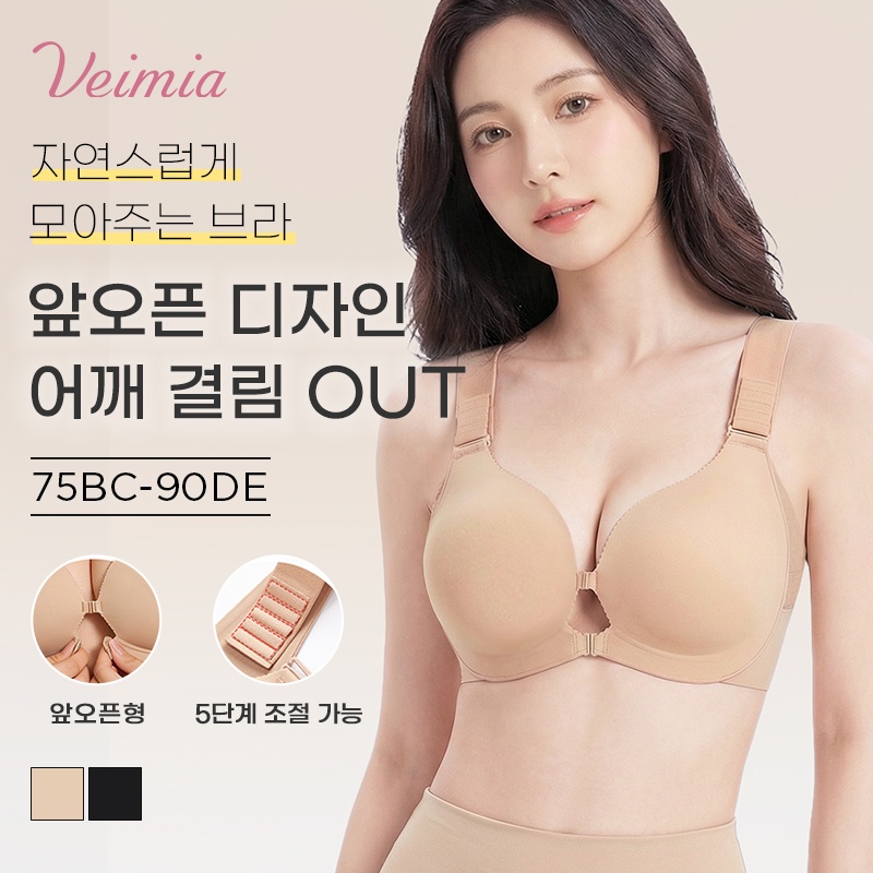 VEIMIA 편안한 앞오픈 브라丨어깨끈 조절 가능한 노와이어 빅사이즈 모아핏 데일리 브라