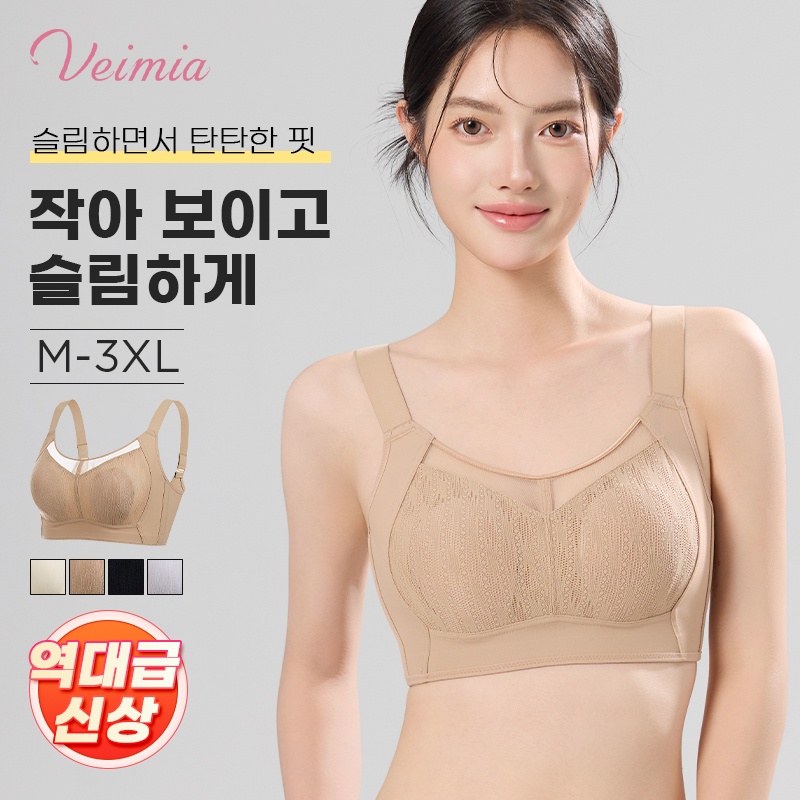 VEIMIA 큰 가슴 작아 보이는 통기성 망사 브라丨4중 서포트 구조 체형은 슬림하면서 탄탄한 핏 운동할 때도 착용 가능한 브래지어