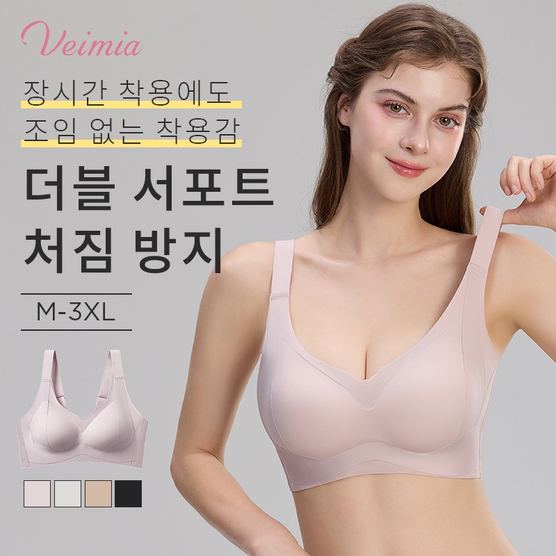 VEIMIA 처짐 방지 보정 브라丨이중 리프팅 구조 안정감 있게 잡아주는 노와이어 브라 장시간 착용 가능