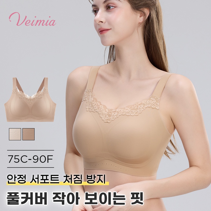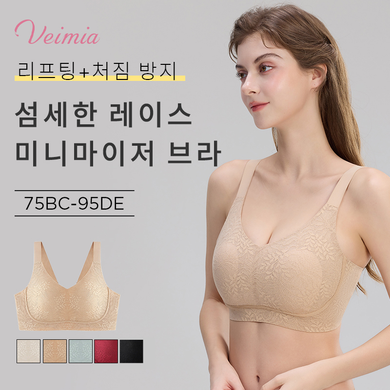 VEIMIA 미니마이저 레이스 브라丨가슴 작아 보이는 효과 처짐 없는 확실한 리프팅 효과 매끈한 슬림핏 노와이어 브라