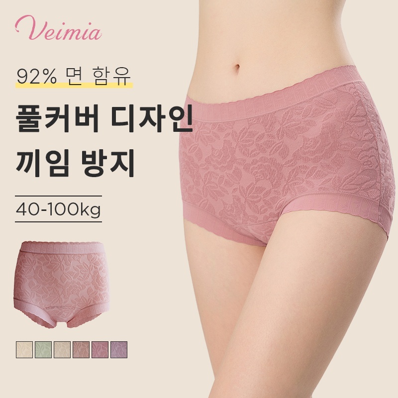【초특가 5장₩49,900】VEIMIA 풀커버 하이웨이스트 무봉제 팬티丨끼임 방지 풀커버 디자인 92% 면 함유 민감 피부도 편안한 하이웨이스트 팬티