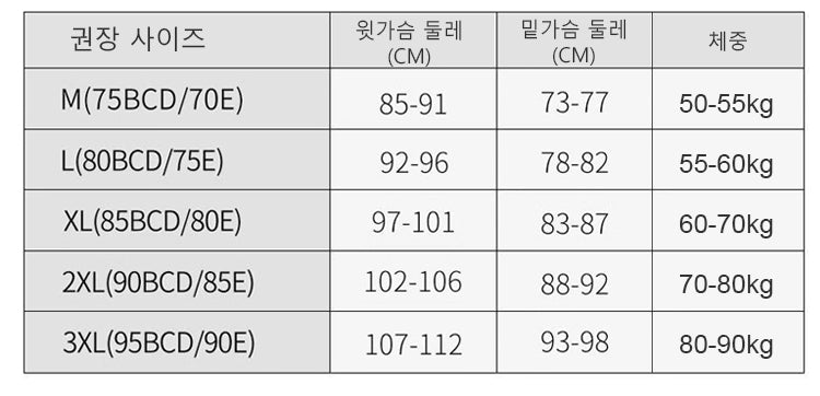 ※시판 브래지어가 꽉 끼시는 분은 평소보다 한 사이즈 더 큰 거로 선택해 주십시오.