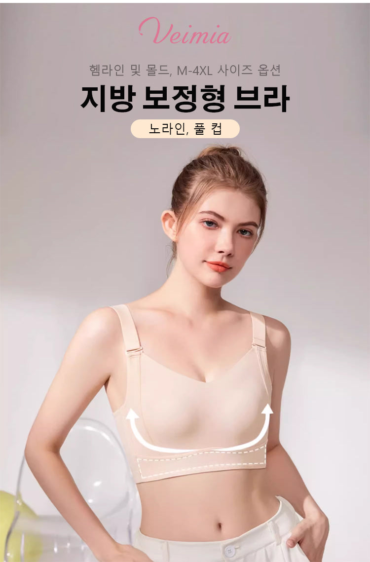 VEIMIA 처짐 방지 풀컵 브라丨가슴 작아보이는 노와이어 보정형 브래지어